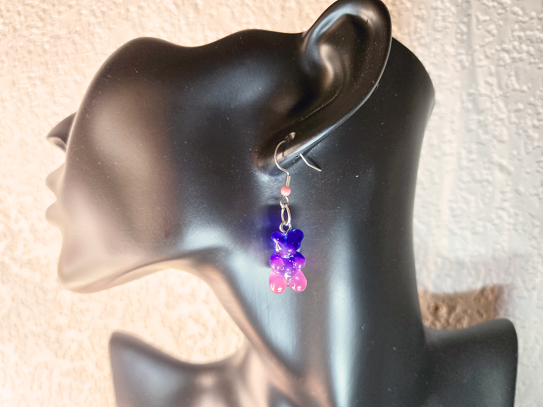 The candy bear hangs from a little ring, and there’s a small pink bead that matches the bear’s color. These earrings bring a fun, sweet vibe to your look!